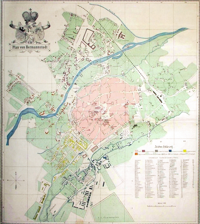 harta Sibiului in 1884, la inceputul mandatului lui Wilhelm Adler von Hocmeister.